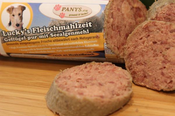 Luckys Fleischmahlzeit ist ein Menü mit 70,0 % Fleischanteil